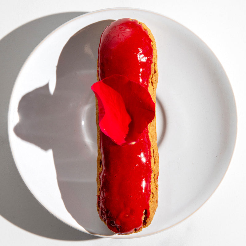 A classic éclair filled with vibrant mandarin filling, offering a bright citrus flavor balanced by the pastry's light, delicate texture
